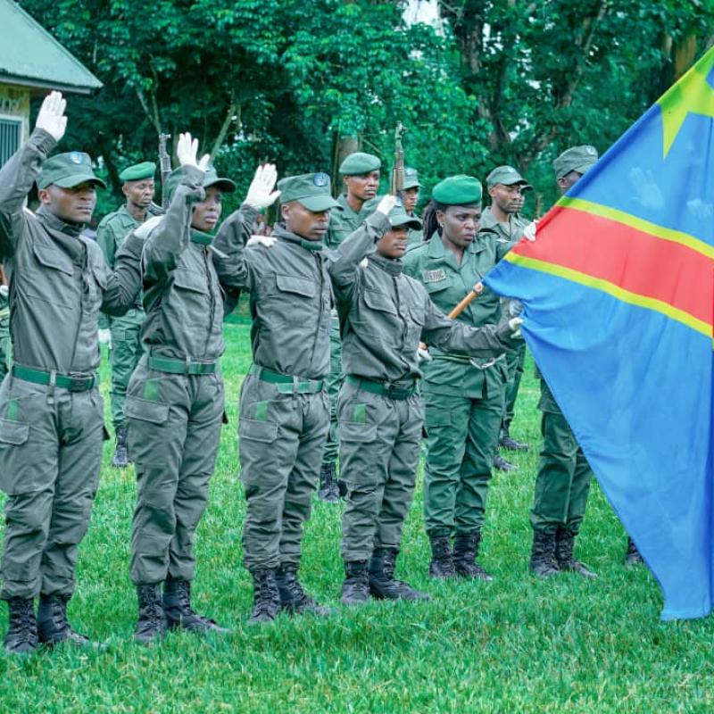 Soixante-trois nouveaux éco-gardes ont rejoint l'équipe de la Réserve de Faune à Okapi. La cérémonie officielle a eu lieu à Mambasa (Ituri) jeudi dernier en présence du Général Massi Bamba, Commandant du CorPPN.